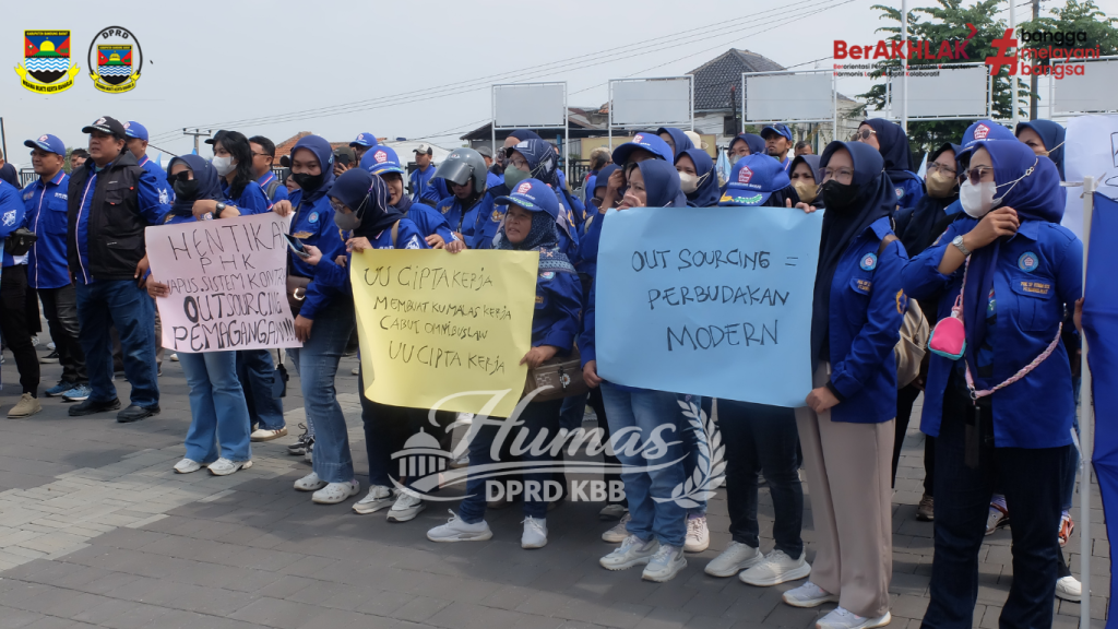 Bandung Barat – Buruh yang tergabung dalam Serikat Pekerja Seluruh Indonesia (SPSI) Kabupaten Bandung Barat menggelar aksi unjuk rasa damai dengan membawa 11 tuntutan. Salah satu isu utama yang disuarakan adalah terkait sistem outsourcing.